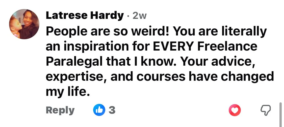 I’m known for taking the overwhelm, mystery, and gatekeeping out of building a paralegal business — and showing you simple, practical steps you can take on your OWN time that actually work. No fluff. No unrealistic promises. No “just hustle harder” nonsense.