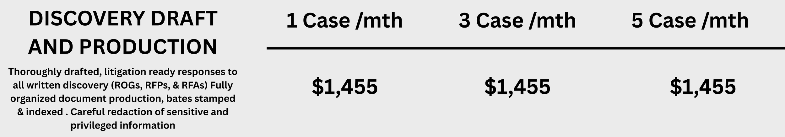 Thoroughly drafted, litigation ready responses to all written discovery (ROGs, RFPs, & RFAs) Fully organized document production, bates stamped, indexed, and careful redaction of sensitive information